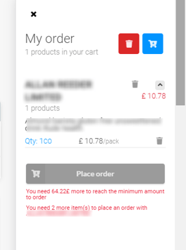 - Additionally, while filling your basket, you can track the minimum order value or minimum number of products on the right side.