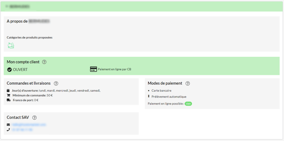- Vous y verrez les détails tels que le montant minimum de commande, le nombre minimum de produits, les jours de livraison, le coût de la livraison et les méthodes de paiement acceptées.