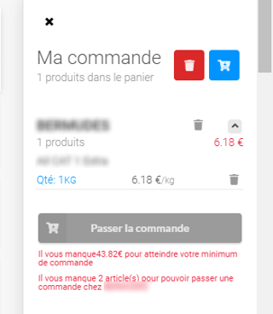 - De plus, pendant que vous remplissez votre panier, vous pouvez suivre la valeur minimale de commande ou le nombre minimum de produits sur le côté droit.